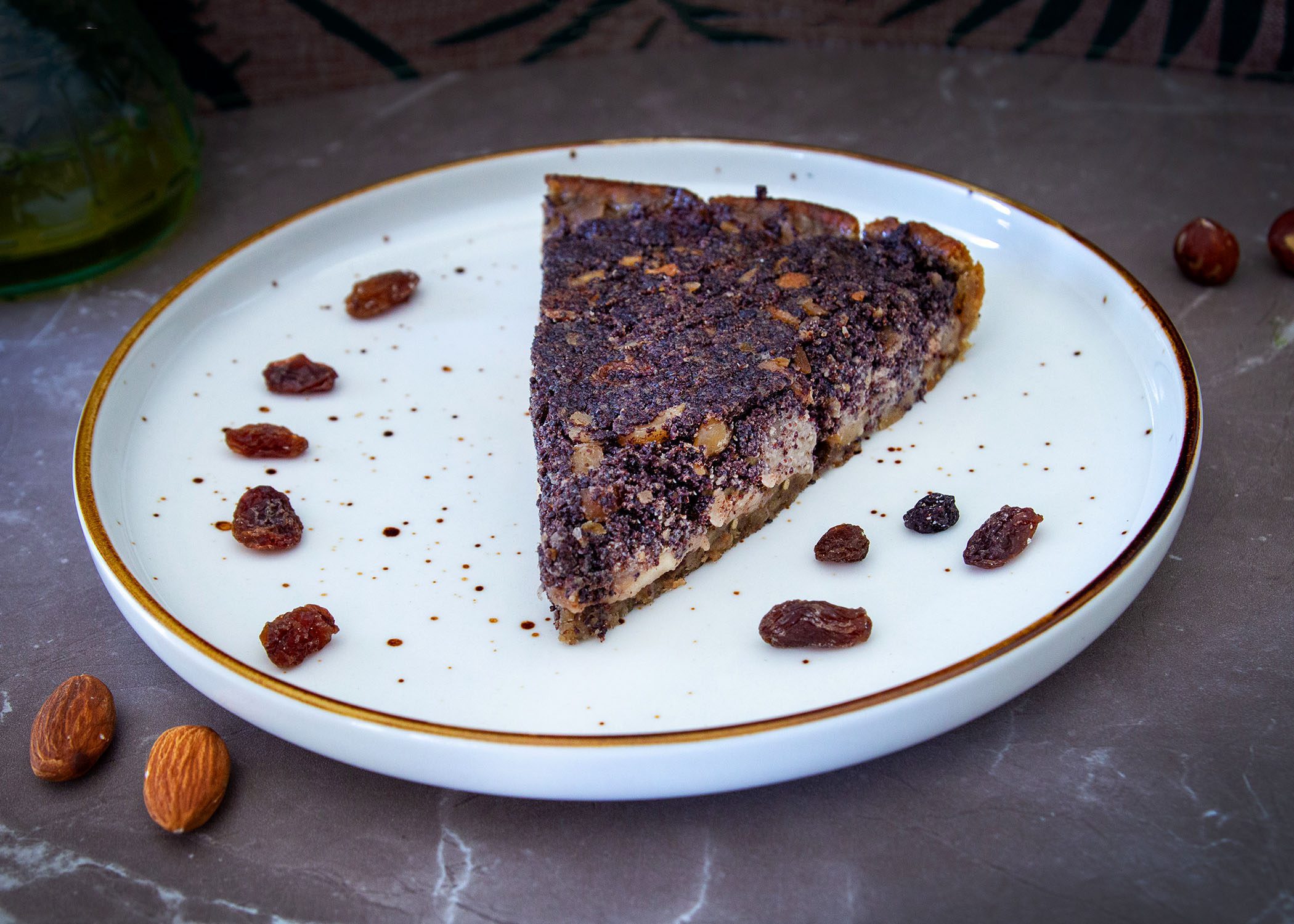 тесто: семечки подсолнуха, цельная и белая мука, финик; начинка: мак, изюм, яблоко, финик, кукурузный крахмал