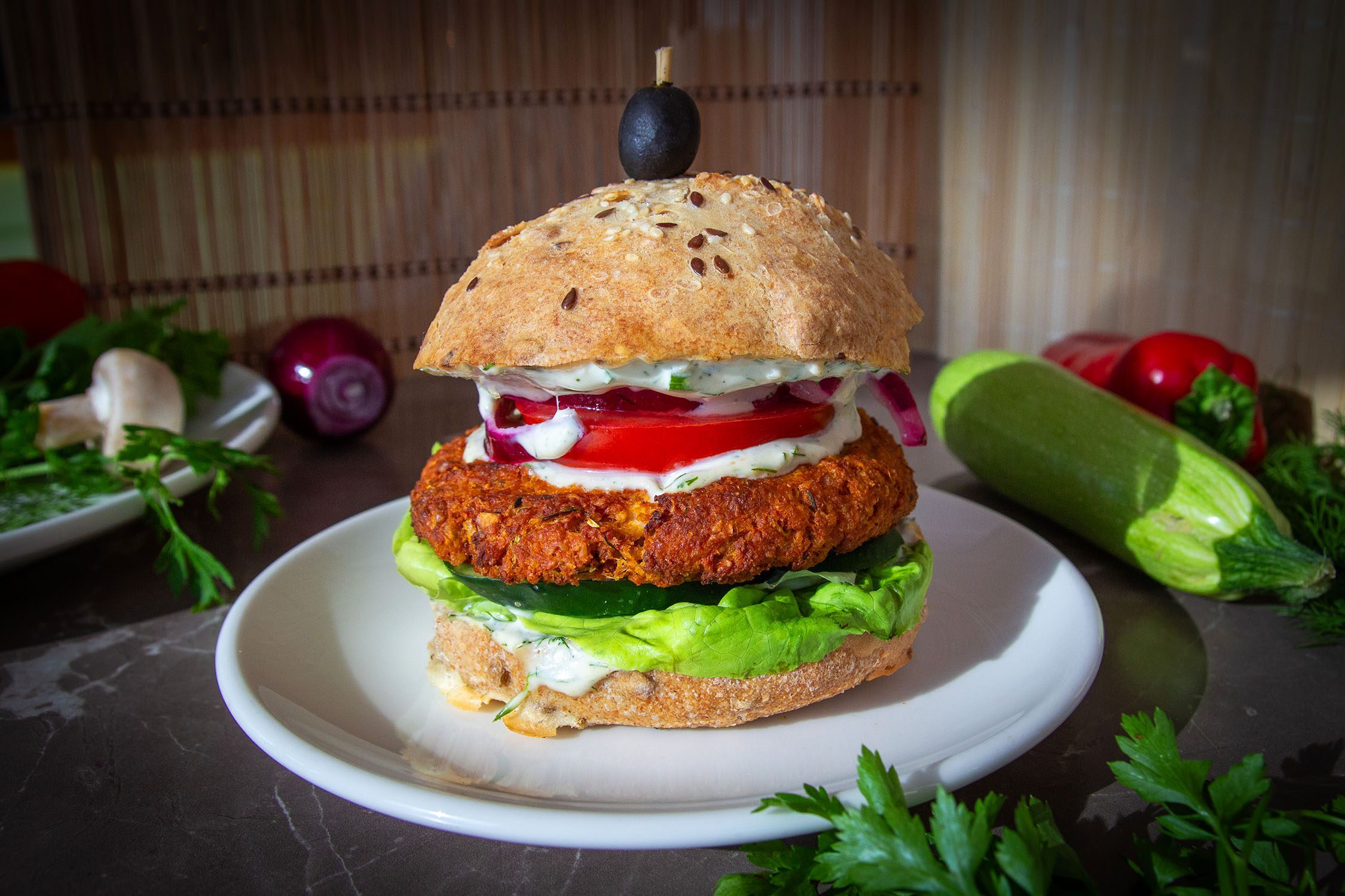 Brašno od cijelog zrna, zobeno brašno, mrkva narezi, luk, kobasica, proso